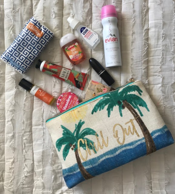 Lastly, my go-to lipstick, lotion, a nail file, and hand sanitizer also make it into the bag. I make sure to keep all the toiletry type items in a little separate bag in case there\’s any spills my book and wallet won\’t be ruined.
