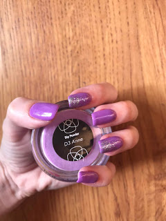 5. If doing glitter: Do a thin probase layer then dip nail in glitter dip, tap excess off nail over jar, WIPE LIQUID BRUSH before returning to bottle, gently brush off excess powder