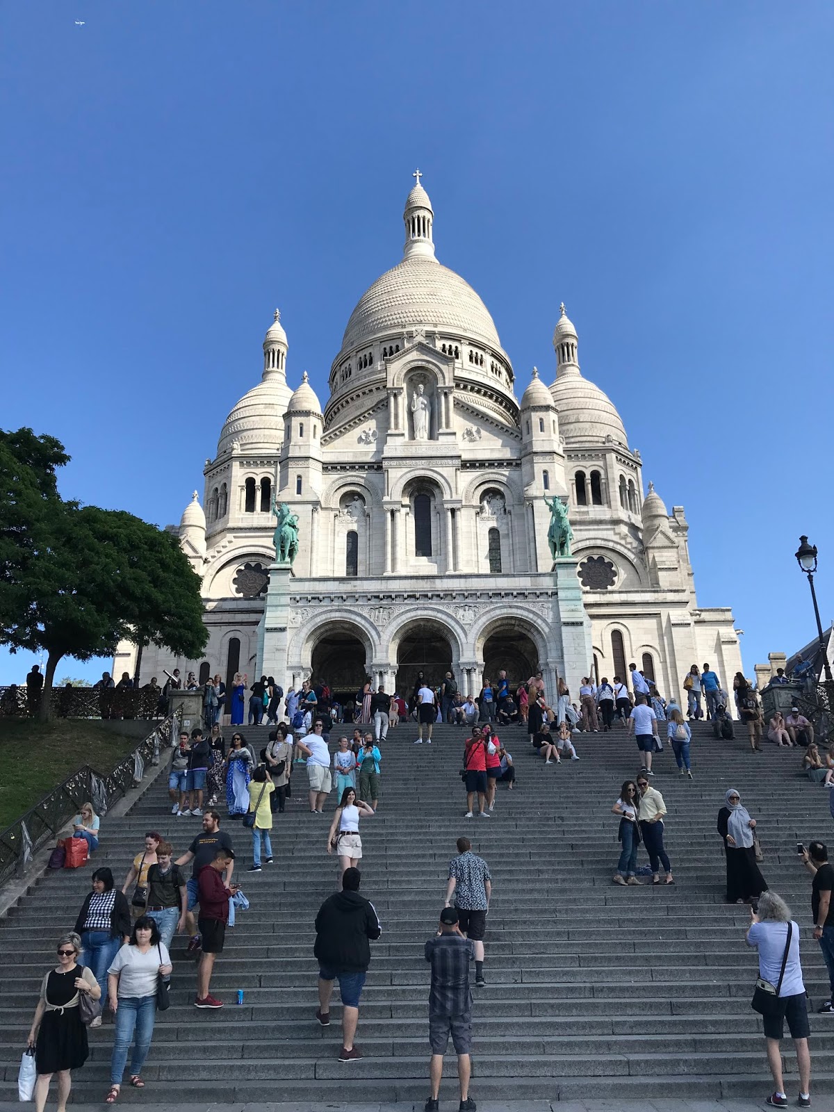 Since we had made it all the way to this area we decided to walk over to Montemarte, a neighborhood well known for the Sacre Couer Basilica. It’s an easy walk through town to the bottom of Montemarte, but a bit of a trek up multiple flights of steps to the top. This being are rest day we chose the tram ride up for 1,90 Euros each. This Basilica completely exceeded my expectations, yes there were a lot of tourists around but it rivals Notre Dame in beauty.