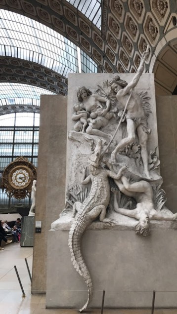 The museum had an intimidating line, but it moved pretty quickly totaling about 45 minutes of waiting. 2 adult tickets cost 28,00 Euros. We were on the hunt to find a clock window that made for a beautiful silhouette photo that even the Duke and Duchess of Cambridge have taken advantage of! However, once we were inside we were able to appreciate so much more than just the clock. There were two levels of sculptures, my favorite being the Ernest Barrias’s Les Chasseurs d’alligators ou Les Nubiens, Monet paintings, a temporary Van Gogh exhibit that featured his famous self portrait, along with many other beautiful works of art. To find the clock you have to go to the top level and past the first clock located in the cafe area, the one accessible for photos is in the last exhibit wing of that floor. We spent 45 minutes inside because we were getting tired, but we estimated you could do the whole museum in 3-4 hours.