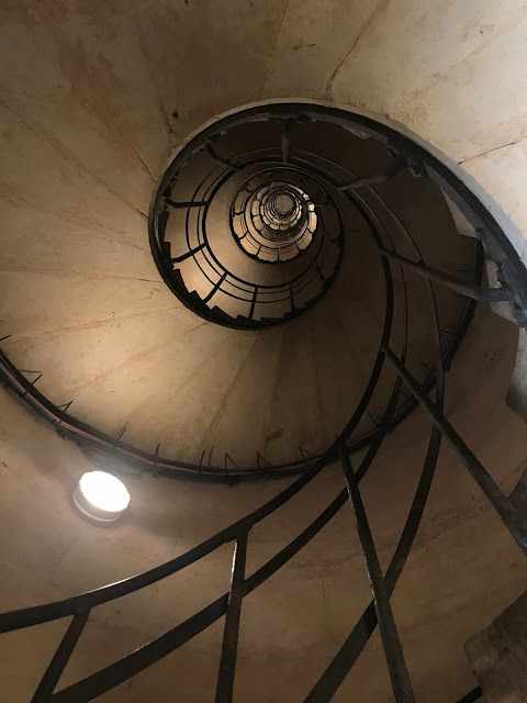 They offer an option to walk up 300 steps to the very top of the building for panoramic views of the city. Us always being on the hunt for the best photos thought this was a great idea! I will be very honest; this was not a great idea for me whatsoever. You walk all the way to the basement area of the building, walk through a ticket booth, and enter a small (think 1 person wide) staircase with small rectangular windows only every 10 steps.