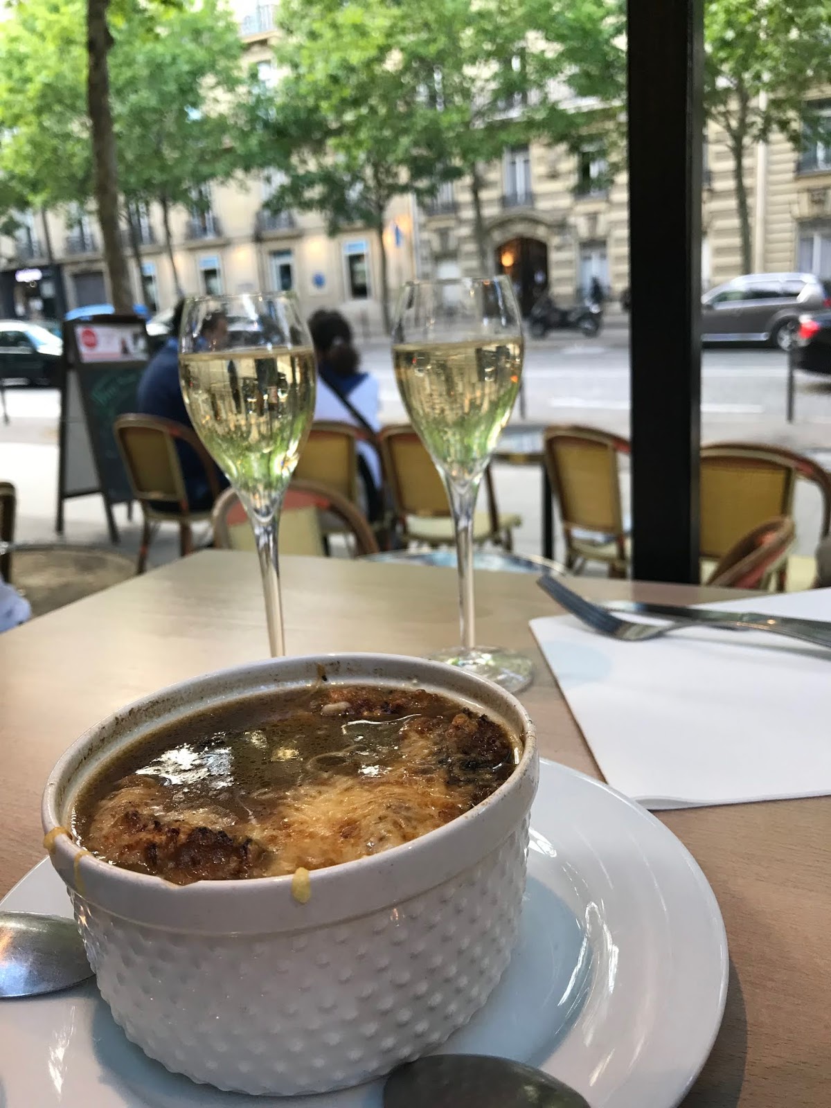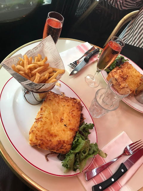 On our way home we at at Bistro Des Champs right on Champs de Elysees. They had a lovely outdoor seating option that seemed to be common for the restaurants around and allowed for great people watching! We both ordered Croque-Monsieurs, which are basically ham & cheese sandwiches, and a glass of champagne. It came to about 25,00 Euros each in total and the atmosphere of being right on Champs de Elysees was well worth it!