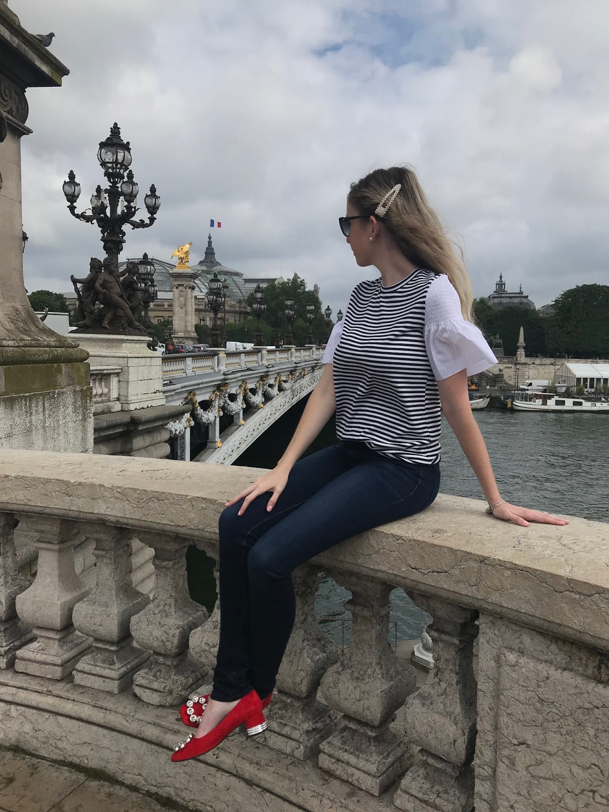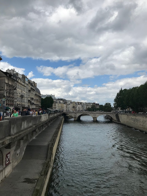 Our plan for this day was to see EVERYTHING. From what I researched we could see almost all the major landmarks in the city by walking down both sides of the Seine River. We first came to the Grand Palais and the Petit Palais. They have exhibits inside, but we just visited the outdoor area. On the opposite side of them is a beautiful park too. We looped around them toward the Pont Alexandre III bridge. This bridge allows for foot traffic as well as cars. It has incredibly ornate gold accents all across it and is definitely the most ornate of the bridges we saw.
