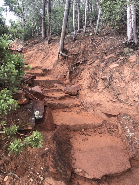 The last 30 minutes or so are when it starts to get a little more difficult. There are about 4 sets of dirt stairs to get up, but I have seen people of all ages on the trail doing just fine!
