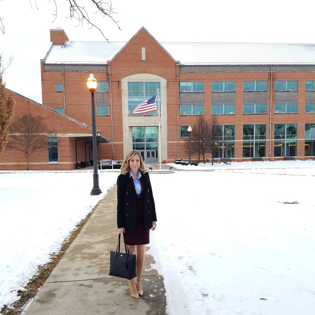 Some schools have other events before or after the interviews, like a dinner. I would follow the same dress code for these events as well unless it is otherwise stated. I wore mauve dress pants, a thin black belt, nude pointed toe heels, a white button down, and a wool coat.