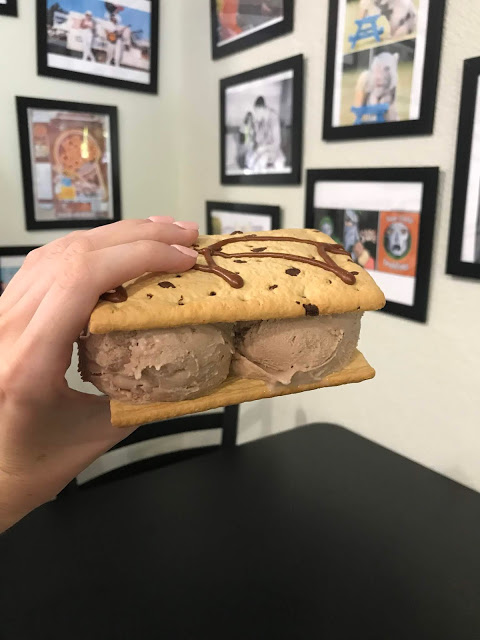 This is a must if you have a sweet tooth! They not only have cheddar goldfish flavored ice cream, they also have poptart ice cream sandwiches!! I had never thought of this before, but wow is it a great combo. We chose the chocolate ice cream with a chocolate chip flavor poptart. One sandwich was more than enough for us to share and it did get a little messy as it melted. If I went back I would want to try the cinnamon ice cream with the cinnamon brown sugar poptart!